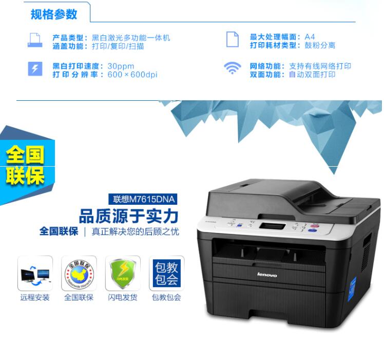 聯(lián)想M7615DNA/M7625DWA網(wǎng)絡(luò)雙面打印自動(dòng)連續(xù)復(fù)印掃描激光一體機(jī)