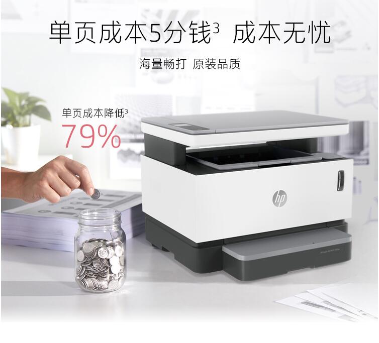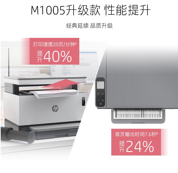 HP/惠普 Laser NS 1005W 創(chuàng)系列 智能閃充大粉倉一體機 無線激光多功能 無線打印復印掃描三合一